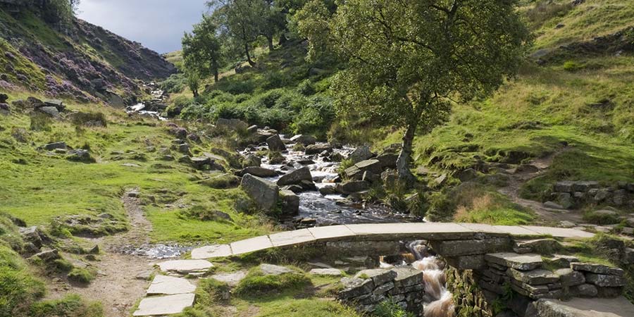 This sign-posted route, approximately a five-mile round trip which leads from Haworth to a series of small waterfalls, offers a pleasant walk through the beautiful moorland landscapes which feature in the Brontë sisters' novels. Points of interest include an 'L'-shaped boulder known as Brontë's Chair and the remains of the Brontë Bridge which, until it was washed away by flood in 1989, crossed the brook into which the waterfall flows.