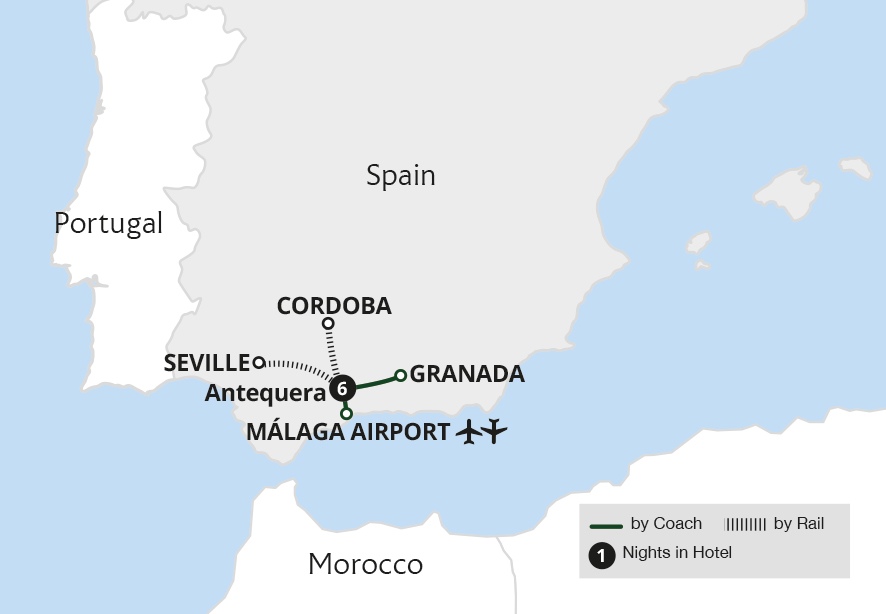 Discover the best of Andalucía on this unforgettable holiday, exploring the region's three most iconic cities. There is also plenty of free time for you to relax by the hotel pool or explore the local area at your leisure. From a base in Antequera, often referred to as 'the crossroads of Andalucía', embark on guided tours of the historic cities...