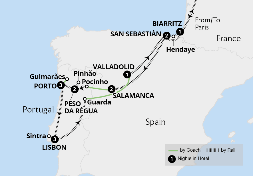 Flowing from northern Spain to the Atlantic Ocean, the Douro River carves a route through a rolling landscape of vineyards and idyllic locations. On this Iberian holiday, explore the Douro Valley by rail, travelling from Spain's 'Golden City' of Salamanca and through Portugal's beautiful countryside. Experience the region's iconic wine and unique...