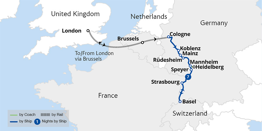 • Explore the markets of Rüdesheim, Heidelberg, Speyer, and Strasbourg