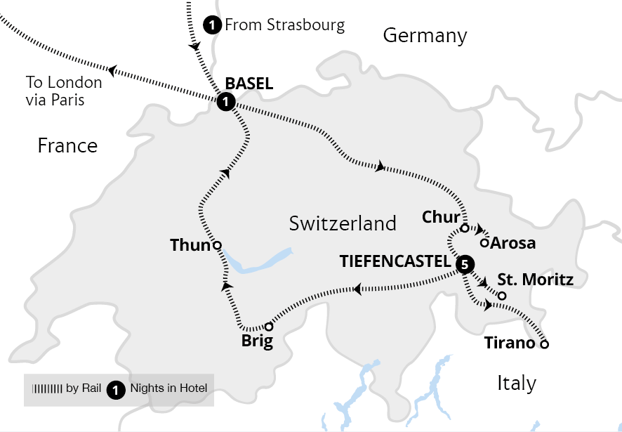 Experience epic mountain landscapes and shimmering alpine lakes on this fantastic holiday to Switzerland. Discover the Swiss Alps on the world-acclaimed Bernina Express and Glacier Express from our popular bases in Chur and Brig, traditional towns surrounded by snow-capped peaks. Enjoy a private aperitif on the terrace of the 10th-century Spiez...