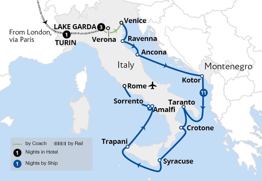 Let the beauty of Italy and the Adriatic unfold on a journey combining lakeside charm, cultural treasures and an unforgettable cruise Croatia and Montenegro's historic towns. Experience the timeless gems of Lake Garda on a GRJ escorted tour, exploring historic Verona and indulging in a dinner and tasting at an authentic Valpolicella winery...
