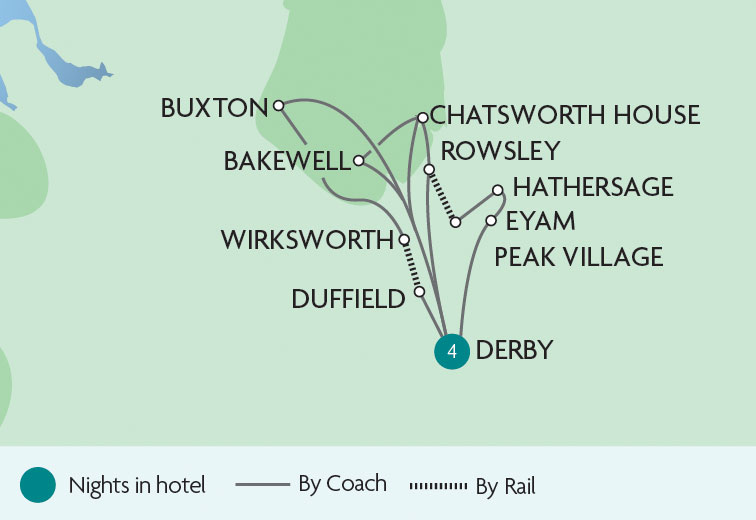 Uncover some of the best landscapes that rural England has to offer in Derbyshire and the Peak District. Visit the pretty town of Buxton and discover its Roman origins with a local guide, explore Bakewell's historic buildings and maybe try its famous tasty treats, before visiting the majestic Chatsworth House, and travelling back in time on...