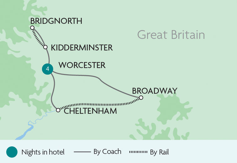 From picture-postcard villages and lush rolling meadows to gentle waterways and historic steam railways, discover quintessential English charm and beauty in abundance on this superb holiday to one of the most scenic parts of the UK. Explore timber-framed Tudor buildings and the stunning cathedral in Worcester, discover the charming Cotswold...