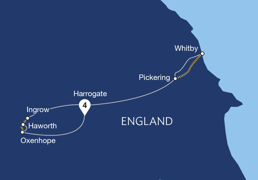 Discover Yorkshire on this picturesque getaway by rail. With timeless towns and cities, Yorkshire is packed with rural landscapes, ancient streets, and diverse architecture, just waiting for you to explore. After checking into your hotel in the elegant town of Harrogate and visiting the coastal town of Whitby, enjoy a journey on the North...