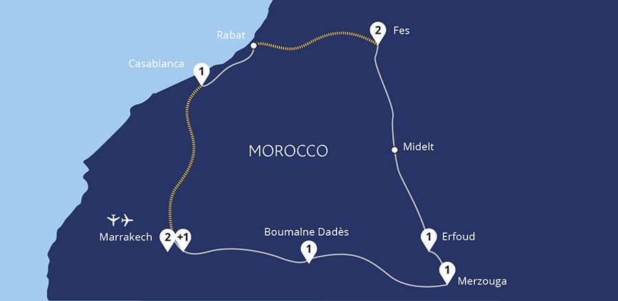 Explore three of Morocco's alluring Imperial Cities - Fez, Marrakech and Rabat - discovering architectural treasures, intricate palaces, magnificent mosques and vibrant souks. We venture into the Atlas mountains into an ancient desert landscape, visit exquisite mud-carved palaces and traditional Berber villages, travel along the wondrous 'Route...