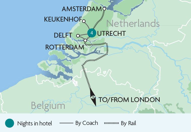 This evening, we transfer to our hotel in central Utrecht for four nights, where we get to know the group over dinner in the hotel.