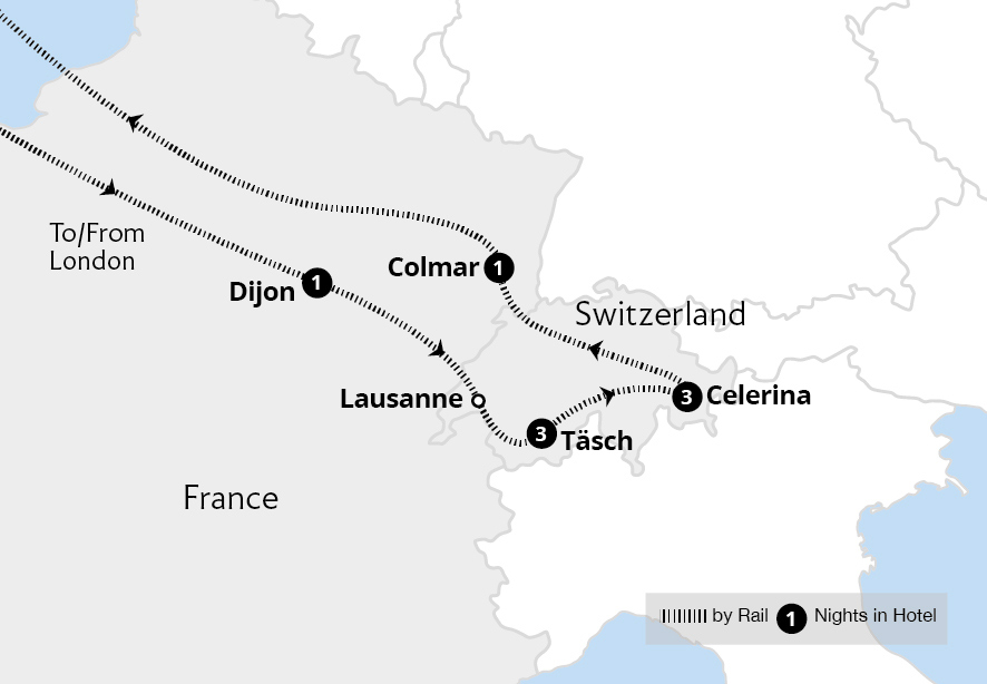 After breakfast this morning, we return to Colmar station to board the train to Paris in First Class. In the French capital, we switch to the Eurostar service in Plus class and enjoy a light meal at our seats as we travel to London St Pancras, where you exploration of the Swiss Alps concludes.