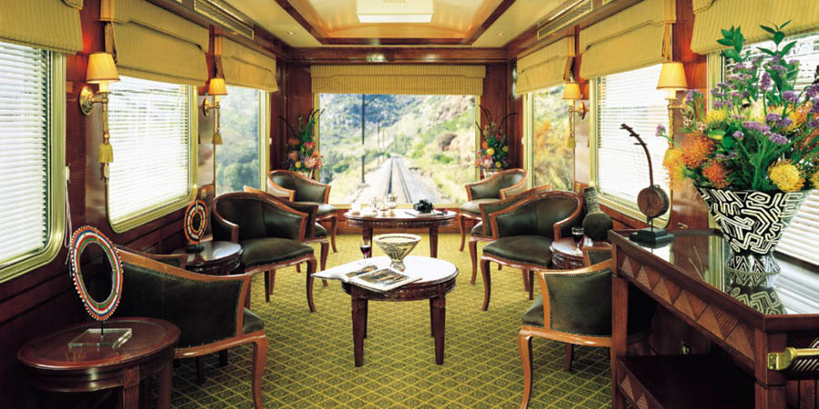 Polished silverware, glistening crystal glasses, custom bone china and crisp white linens await diners in the Blue Train's dining car. Each breakfast, lunch and dinner is a memorable event, with up to 42 travellers accommodated during each seating - of which there are two for brunch and dinner daily. Breakfast has an open-door policy. During the meals, guests are served only the finest offerings from South Africa, from succulent local fruits and vegetables to incredible regional cuisine, such as Karoo lamb and Knysna oysters. In addition, a variety of internationally beloved meats, fish and desserts adorn the gourmet menu, and boutique South African wine flows freely. In keeping with the celebratory atmosphere, there is an evening wear dress code for dinner each evening.